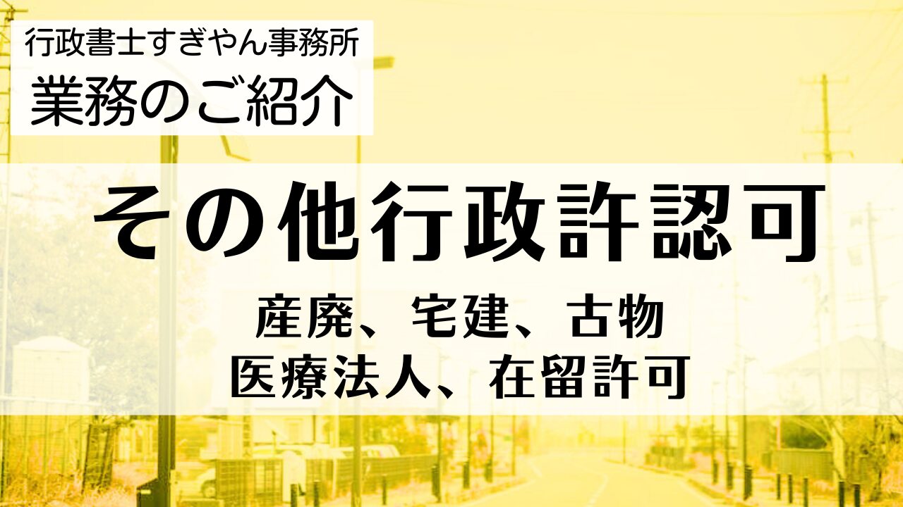建設業と親和性のある産廃収集運搬許可、宅建業免許をはじめ、古物商許可、医療法人設立、外国人在留資格申請などを代行します。